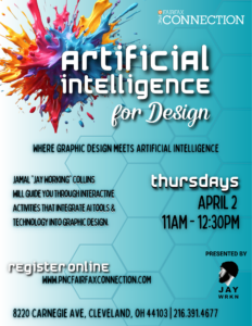This is a 4-week series where participants will explore the intersection of design and artificial intelligence. Our facilitator, Jamal “JayWorking” Collins, will guide you through practical excercises using AI tools and technology in graphic design.