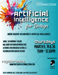 This is a 4-week series where participants will explore the intersection of design and artificial intelligence. Our facilitator, Jamal “JayWorking” Collins, will guide you through practical exercises using AI tools and technology in graphic design.