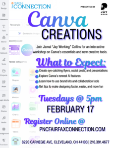In this 4-week hands-on workshop, you’ll dive into Canva to create posters, social media graphics and other cool projects. Learn simple design tricks, play with colors and fonts, and bring your creative ideas to life in a fun, relaxed space for creators.