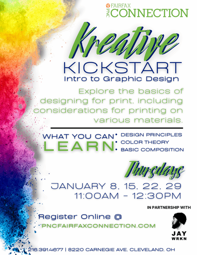 This 4-session series provides hands-on training with essential design tools and software. Explore the fundamentals of graphic design through design principles, color theory, and basic composition techniwues
