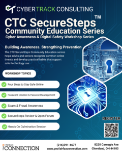 The CTC SecureSteps Community Education serires helps adults and seniors recognize common online threats and develop practical habits that support safer technology use.