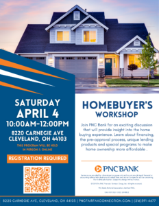 Join PNC Bank and partners for an exciting discussion that will provide insight into the homebuying expereince. Learnabout financing, the pre-approval process, unique lending products and special programs to help make homeownership more affordable.