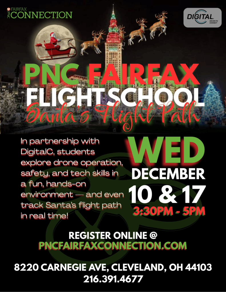 In partnership with DigitalC, students explore drone operation, safety, and tech skills in a fun, hands-on environment — and even track Santa’s flight path in real time!