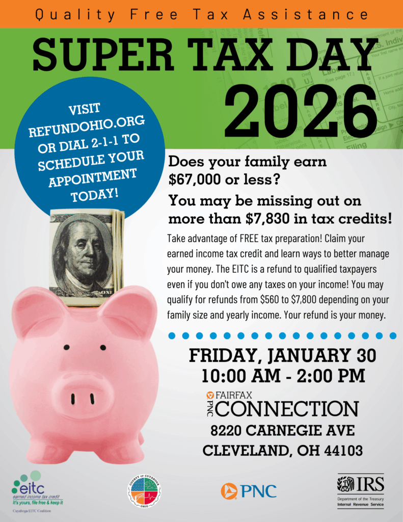 Take advantage of FREE tax preparation! Claim your earned income tax credit and learn ways to better manage your money. The EITC is a refund to qualified taxpayers even if you don’t owe any taxes on your income! You may qualify for refunds from $560 to $7,800 depending on your family size and yearly income. Your refund is your money.