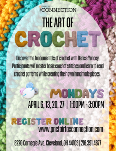 Learn the fundamentals of crochet. Participants will learn basic crochet stitches and how to read a crochet pattern while creating their own crocheted pieces.